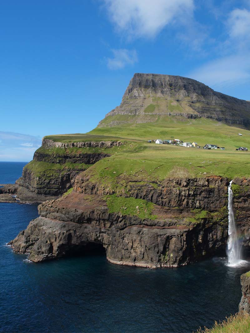 Færøyene er et friskt og annerledes reisemål. Her er storslått natur med steile fjell, forrevne klipper og mange øyer. Opplev og se de mektige irrgrønne fjellene speile seg i det særegne lyset! Tusenvis av elver og fosser renner ned over de bratte fjellsidene og mengder av sauer beiter i de samme fjellene. En reise til dette øyriket er en uforglemmelig opplevelse.