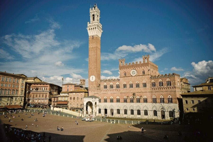 Siena er bygget på syv høydedrag rundt byens sentrale plass Piazza del Campo. Piazza del Campo er selve hjertet i Siena, og har en ganske stor helning. Høydeforskjellen innenfor Piazza del Campo alene er nesten åtte meter. Her ligger rådhuset Palazzo Pubblico som var oppført i perioden 1297 til 1310. I Rådhuset ser man blant annet de berømte middelalder-freskene «Det gode styre» og «Det dårlige styre» malt av Lorenzetti i år 1338. Ved siden av Palazzo Pubblico ruver tårnet Torre del Mangia med 505 trinn til toppen, oppført mellom år 1338 og 1348. Vi besøker Palazzo Pubblico og Duomo di Siena.